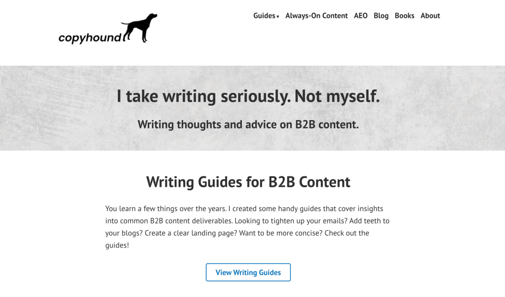 I also run a page called Copyhound, where I write about writing – especially B2B marketing.